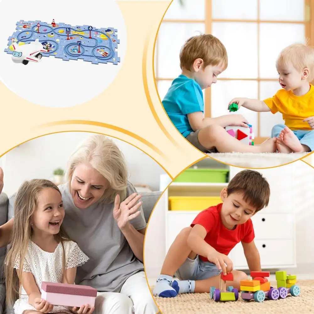 1.Educational Development: Through the use of interactive tracks and puzzles, children are able to comprehend basic physics concepts, while also improving their management and cooperation skills in a unique way.2.Modular Tracks: The Interactive Race Track Puzzle provides a versatile and modular design that can be easily disassembled and moved. With flexible track pieces, children can create a racing world of their own, adjust to their needs, and combine in various connection ways to suit their imagination. Perfect for indoor or outdoor playtime