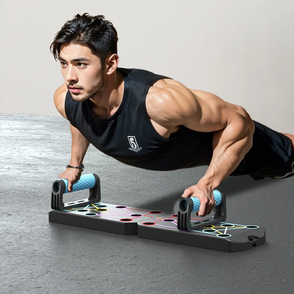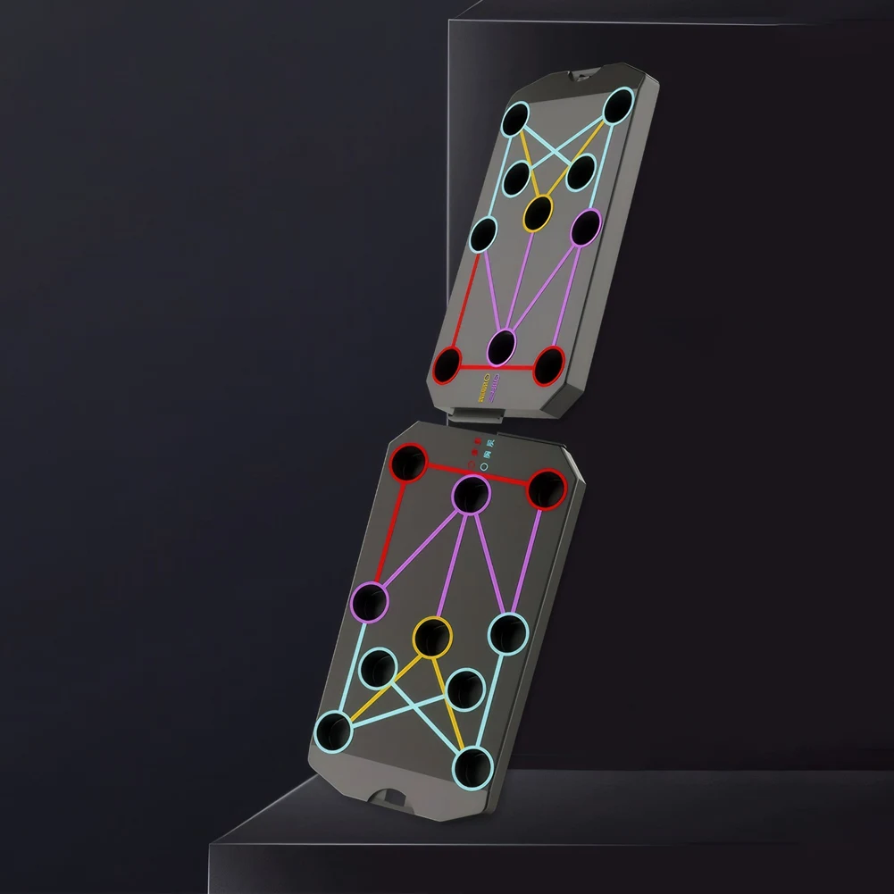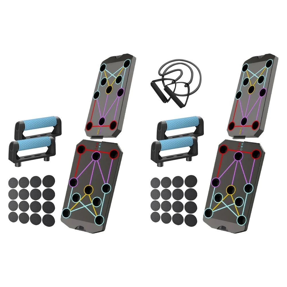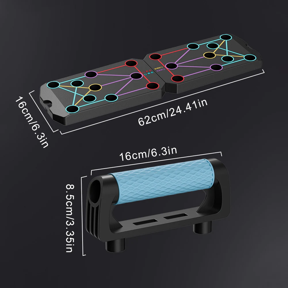 Folding Push-up Board Floor Push Up Handle Multi-Functional Portable Fitness Equipment Heavy Duty Abdominal Enhancement Support Non Slip for Strength Training Features: 1.Versatile pushup stand board: With four distinct zones, this innovative design targets specific muscles, allowing for sustainable workouts and sculpting muscle aesthetics seamlessly. 2.Zone-based training: Each section is crafted for different muscle groups, offering varying exercise distances to enhance multi-directional muscle stimulation, leading to more noticeable training results. 3.Upgraded anti-slip silicone grips: The support handles are made from silicone material with an anti-slip textured surface, providing stronger grip with a curved design for enhanced handling. 4.Non-slip reinforced base padding: This floor push up handle features reinforced pads that provide stability and safety during workouts, ensuring secure positioning on any surface. 5.250kg load capacity: Suitable for various surfaces, our portable fitness equipment supports up to 250kg. It's foldable for easy storage, saving valuable space.