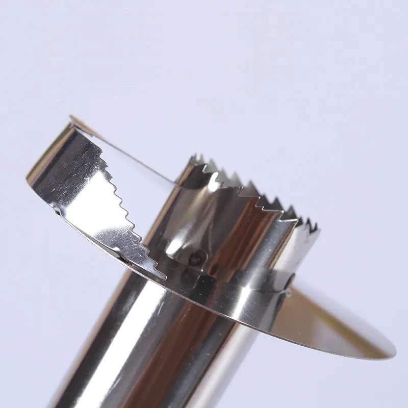 Specification: height 18cm, base diameter: 8.5cm, pipe diameter: 3cm other products size:as picture showPackage List: 1 Piece(plastic bag pack) If you need color box packaging, please contact customer service to pay extraNOTE:Flat or round head1.Pineapple Corer has a decent design which includes blades with sharp serrated tips, one razor-sharp ring blade and one ergonomic grip. It helps you perfectly de-core and slice pineapple in one simple motion.2.EASY TO USE- Prepare Pineapple and Corer Tool. Cut top of the pineapple, press and rotate clockwise(need some force). Slightly pull it up and detach the handle. Slide the fruit flesh off. Then, you get one whole perfect pineapple slice without core! The ergonomic non-slip grip will help you core with ease.